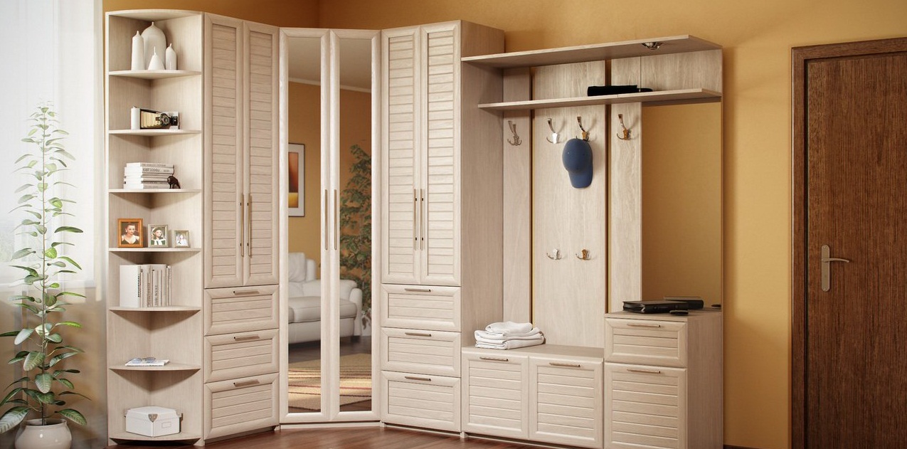 Es sollte gesagt werden, dass es im Schrank für den Flur sein sollte. Zuerst die Kleiderbügel. Sie werden Ihnen erlauben, Hähne und Regenmäntel in gutem Zustand zu halten.Wichtig sind auch Regale für Schuhe, damit Schuhe und Schuhe den Durchgang nicht stören. Sie können sofort einen Schrank mit Regalen für Schuhe kaufen, und Sie können ein separates Bücherregal mit einem bequemen Hocker kaufen. Die ideale Option wäre, ein modulares Design zu erwerben. Mit diesem Schrank können Sie Ihr Interieur regelmäßig aktualisieren. Modelle sind eckig und Wand. Wenn Sie einen kleinen Flur haben, empfehlen wir Ihnen, sich die Eckmöglichkeiten genauer anzusehen, um jeden freien Quadratmeter effizient zu nutzen.