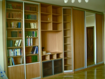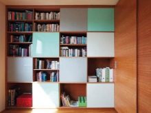Bücherregale in modernen Zeiten werden oft mit anderen Möbeln kombiniert. Zwei verschiedene Funktionselemente können einfach durch eine Partition getrennt werden. So kann das Bücherregal mit Kleiderschrank kombiniert werden. In diesem Fall können beide das gleiche Design haben. Solche Möbel sind ein bisschen wie eine modulare Wand, in der der Fall die Rolle von Bücherregalen übernimmt. Ein Schrank in solchen Strukturen hat normalerweise ein klassisches geschlossenes Design.