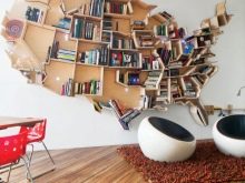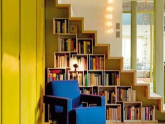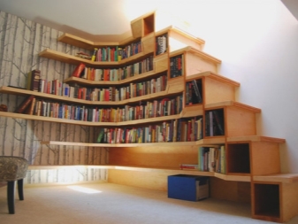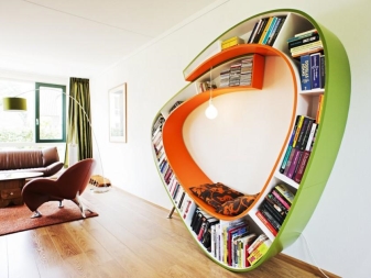 Moderne Designer bieten sehr stilvolle und originelle Modelle von Schränken. Separat ist es notwendig, ein Bücherregal in Form eines Stuhls oder in Form einer Leiter zuzuordnen.Dies ist eine sehr stilvolle und funktionelle Lösung, die ein Highlight in jedem Interieur sein kann. Ungewöhnliche und stilvolle Schränke helfen nicht nur, einen Ort zu organisieren, um Bücher zu lagern, sondern auch jeden Raum zu dekorieren.