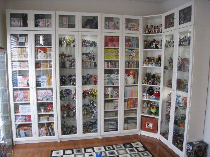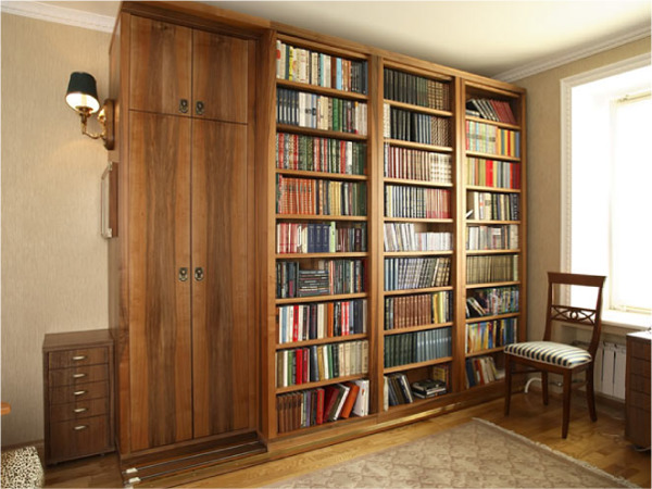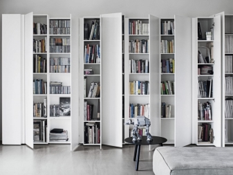 Geschlossene und offene Modelle unterscheiden sich in der Anwesenheit von Verglasungen oder Türen. Geschlossene Schließfächer mit Türen sind die zuverlässigsten und absolut sicher Bücher zu speichern.Aber offene Speicher haben ihre Vorteile. So können Sie sehr schnell und einfach das notwendige Buch finden, da sie alle in Sichtweite sind.