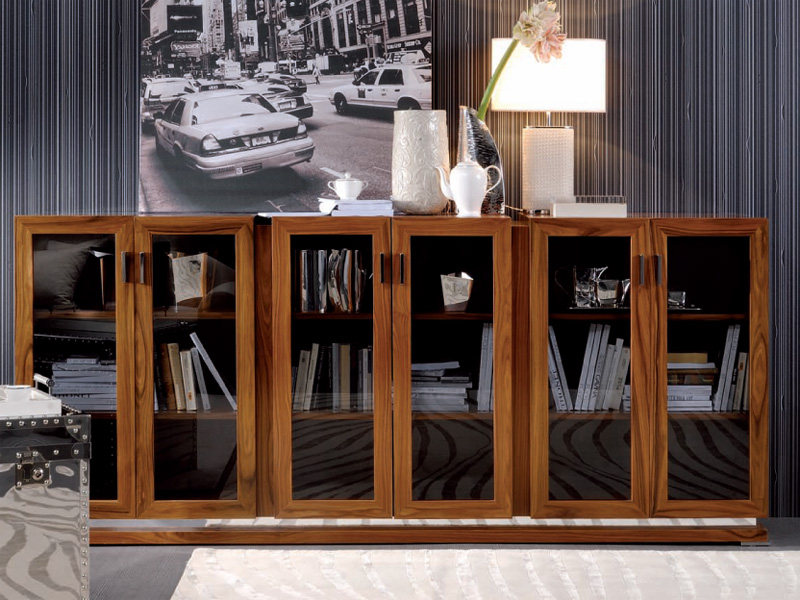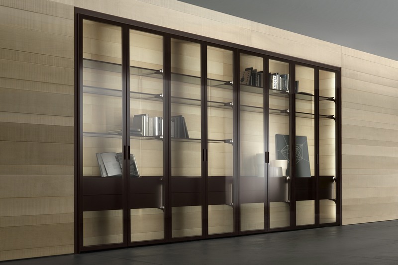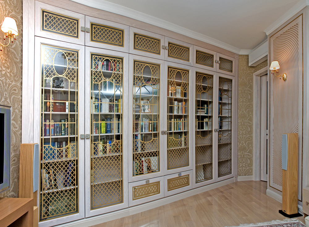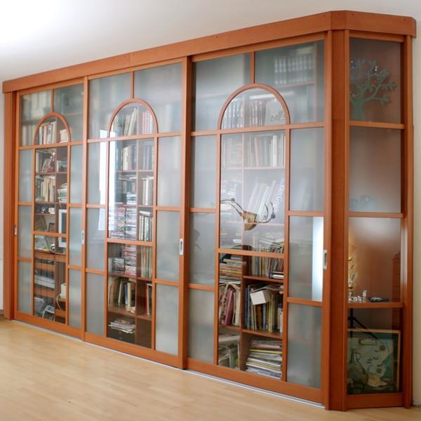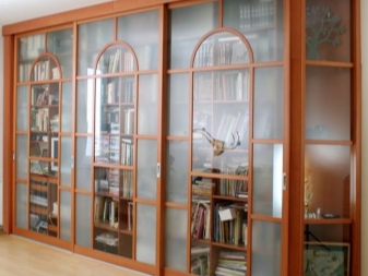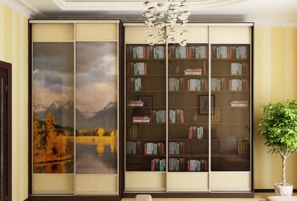 Andere Materialien werden auch verwendet, um Buchmöbel zu schaffen. Türen können aus Glas bestehen. Darüber hinaus kann das Glas entweder vollständig transparent oder sandgestrahlt sein. Es gibt auch abgedunkelte Modelle von Glastüren für den Kleiderschrank, die Bücher vor direkter Sonneneinstrahlung schützen.
