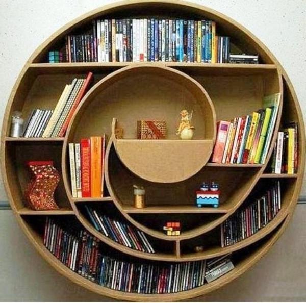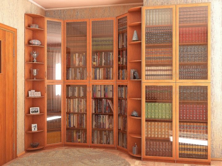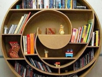 Bücherregale mit Eckregalen sehen sehr stilvoll aus. Sie haben vielleicht nicht die üblichen geraden Formen, sondern elegante, geradlinige Linien. In der Regel befinden sich die Regale an den Rändern eines solchen Bücherregals. Auf sie können Sie sehr schöne und interessant gestaltete Bücher legen.