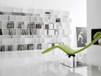 Wenn Sie planen, ein Bücherregal in einem Raum zu installieren, der in einem modernen Hi-Tech-Stil dekoriert ist, ist es besser, einfacheren und einfacheren Modellen den Vorzug zu geben.