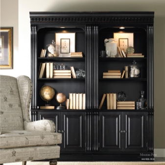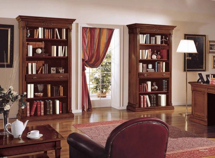 Bei der Wahl eines Bücherregals ist es wichtig, nicht nur auf die funktionalen Eigenschaften dieses Möbelstücks, sondern auch auf sein stilistisches Design zu achten. Es sollte gut in das Gesamtbild des Raumes passen und ihn harmonisch ergänzen. Für klassisch eingerichtete Zimmer ist es besser, Modelle aus natürlichen Materialien zu wählen. Für den Stil der klassischen perfekt abgestimmten Produkte aus Massivholz mit einer schönen durchbrochenen Schnitzerei.