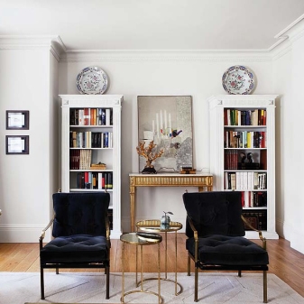 Bücherregale sehen gut aus, in denen es offene Regale gibt, in die man Figuren oder andere Dekorationsgegenstände stellen kann. Sie werden nach der Farbe der Buchumschläge und entsprechend dem allgemeinen Stildesign solcher Möbel ausgewählt. Sie sind in der Lage, das Gesamtbild des Bücherregals zu ergänzen und das Interieur jedes Zimmers zu vervollständigen.