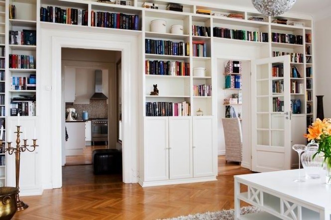Traditionell werden Möbel für Bücher im Wohnzimmer platziert.In der Regel ist das Wohnzimmer ein Raum zur Erholung. Dort können Sie auf der Couch entspannen und Ihr Lieblingsbuch lesen. Es stellt meistens eine rigorosere und schön gestaltete Bücherregale, in denen viele Regale.