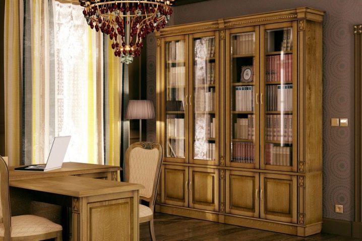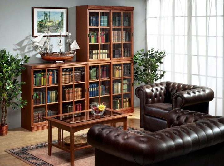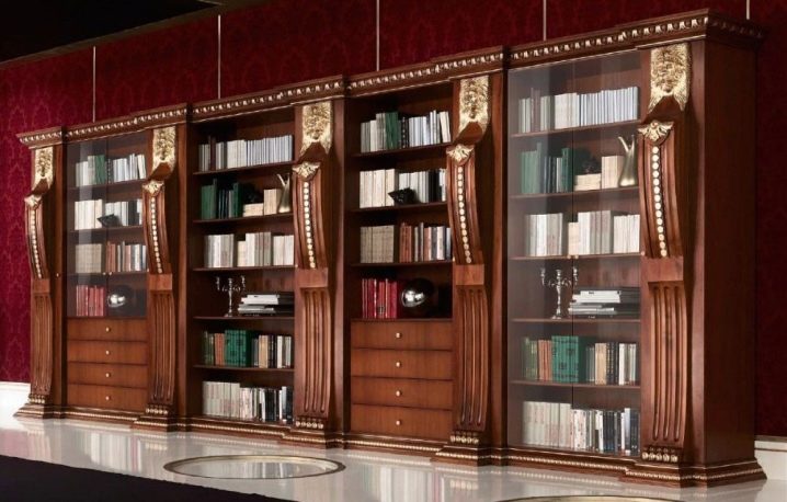 Ein Merkmal des Standard-Bücherregals ist, dass es aus zwei Teilen besteht. Ein Stück hat immer eine Verglasung. Dort werden in der Regel die teuersten und seltensten Bücher, die bestimmte Lagerbedingungen erfordern, gerührt. Der verglaste Teil befindet sich in der Regel oben.