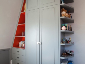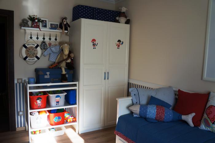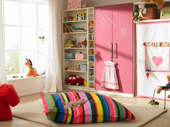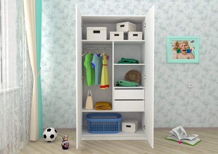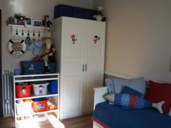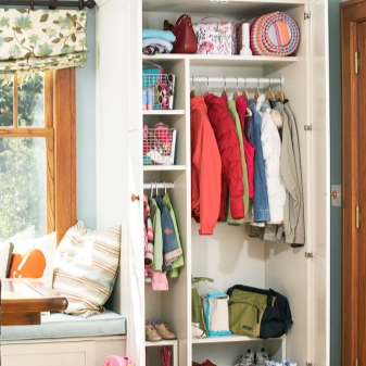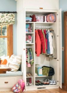 - Stellen Sie ein kleines funktionelles Schließfach in den Kindergarten, aber seine Innenausstattung sollte so ernst sein wie Ihr Kleiderschrank. Es ist notwendig, in ihnen Regale, Schubladen oder Container und Bars zum Aufhängen von Kleidung auf den "Kleiderbügeln" zu haben.