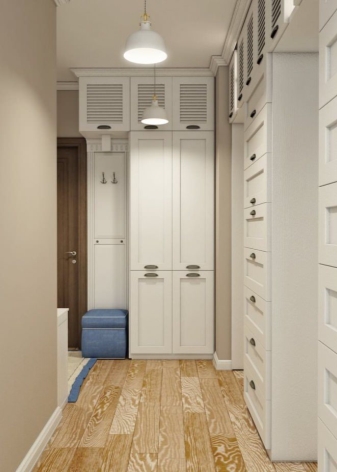 Wenn der Raum des Korridors erlaubt, dort können Sie versuchen, einen Schrank mehr zu legen und es eine Langhantel für die Oberbekleidung zu setzen;