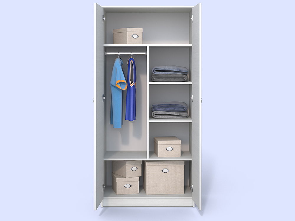 - Der zweitürige Schrank ist die klassische und gängigste Variante dieses Möbelstücks. Es kann in jeden Raum gestellt werden und alles behalten, was Sie wollen.