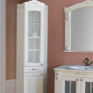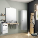Im Inneren des Schrankes, im Badezimmer hinter der Tür, können praktische Regale, Fächer und Schubladen versteckt werden. Sie können alle Badezusätze, Hygieneprodukte, Frotteehandtücher und andere Textilien zerlegen.Solche Modelle werden dazu beitragen, den beschränkten Platz des Raumes und die Lagerung jedes Gegenstandes an seinem Platz zu nutzen.