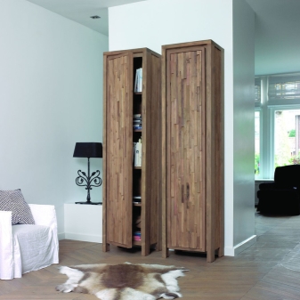 In Möbelhäusern können Sie Produkte aus verschiedenen Materialien kaufen. Das klassische Material zur Herstellung von Möbeldesign mit einer Flügeltür ist Naturholz. Und alle Holzarten können verwendet werden. Eine schöne Garderobe aus Naturholz mit einzigartigen Umwelt- und Gebrauchseigenschaften wird das klassische Interieur perfekt ergänzen und unbegrenzt lange halten. Ein wesentlicher Nachteil eines solchen Schrankes sind seine Kosten.