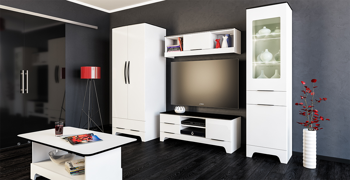Einflügelige Produkte können nicht nur als eigenständige, eigenständige Objekte erfolgreich eingesetzt werden, sondern auch als Teil eines modularen Programms, das sich ideal an die Gegebenheiten jedes Raumes anpasst. Wenn Sie zum Beispiel ein kompaktes, eckiges L-förmiges Design erstellen, benötigen Sie eine Kombination aus zwei geraden Abschnitten mit einem verbindenden Winkelmodul.