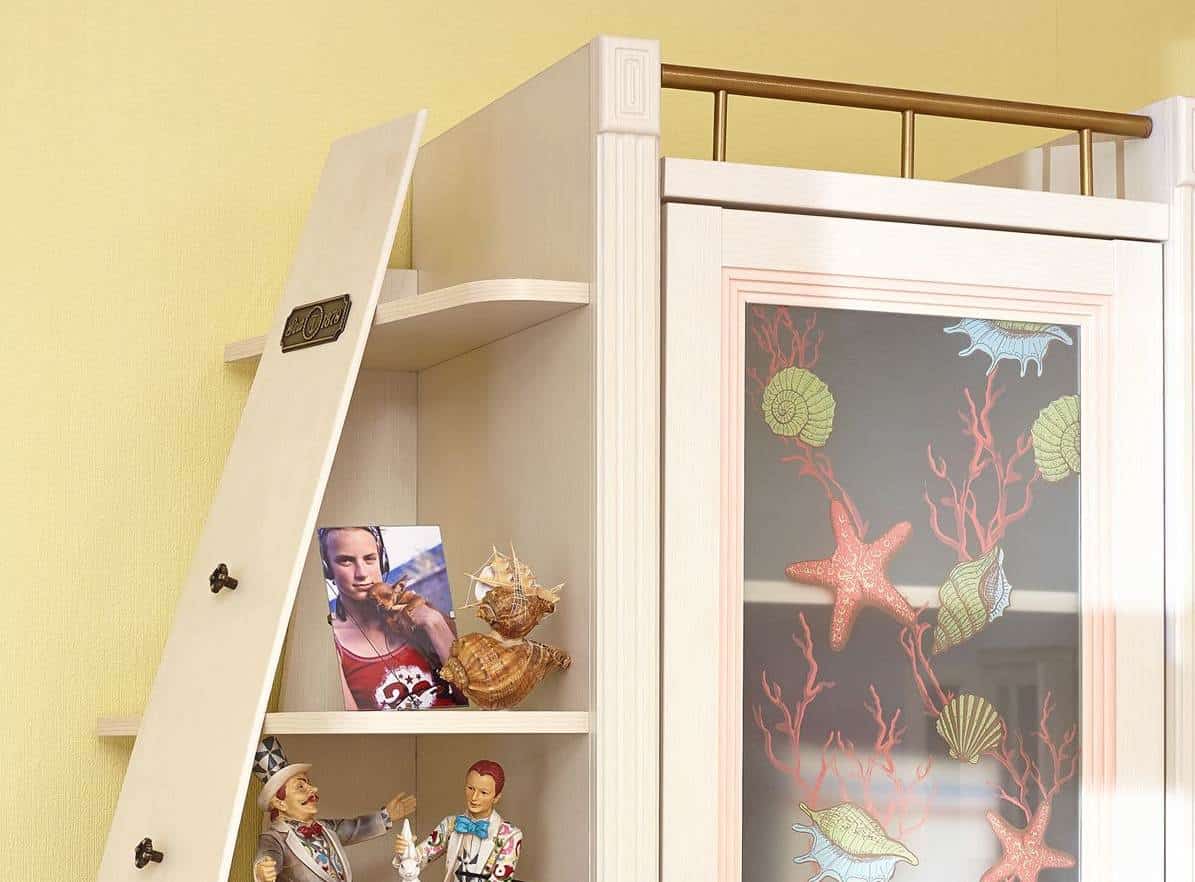 Bei Verwendung des Produkts in einem Schlafzimmer oder Kinderzimmer Normalerweise gibt es ein Fach hinter der Tür mit starr fixierten oder versenkbaren Regalen für die Aufbewahrung von gefalteten Kleidungsstücken und 2-3Schubladen auf den Schiebemechanismen für die Gestaltung von Unterwäsche, Strumpfwaren und anderen kleinen Dingen. Im Wäscheschrank im Schlafzimmer können Sie Bettwäsche und Kleidung zum Schlafen aufbewahren.