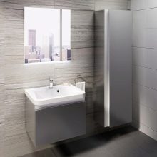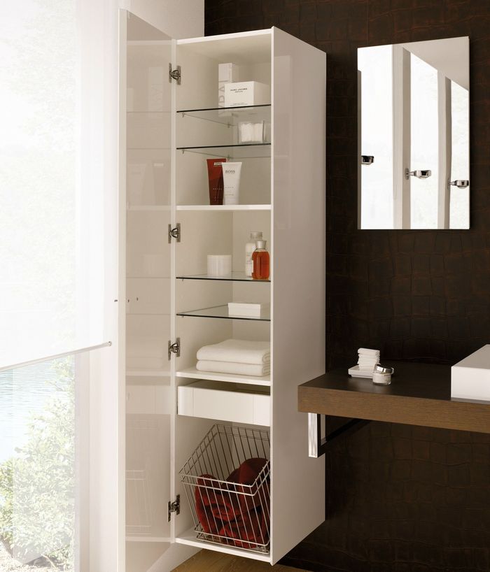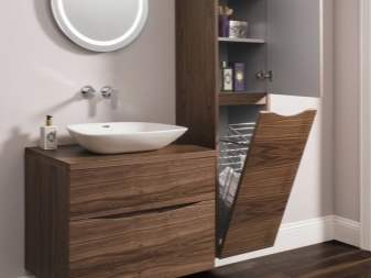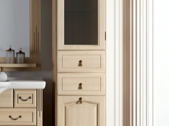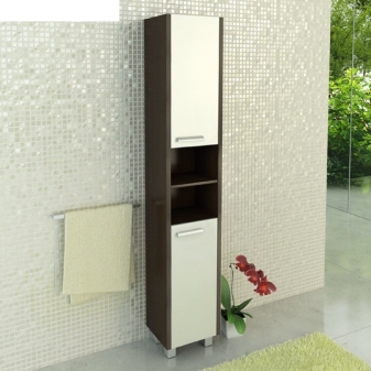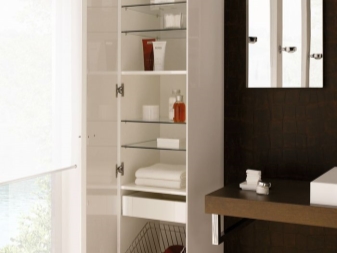 Es ist erwähnenswert, die Nuancen der Wahl eines Schrankes für das Badezimmer. Wenn Sie einen schmalen Schrank in diesem Raum wählen, sollten Sie auf seine Ausstattung achten. Meistens sind die Möbel bereits mit zahlreichen Regalen ausgestattet und Überfluss ist manchmal überflüssig.
