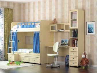 - Im Kinderzimmer Ein Raum kann auch mit einem Lichtschrank ausgestattet werden, mit offenen und geschlossenen Regalen, in die Sie Schulsachen einlegen können.