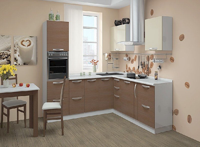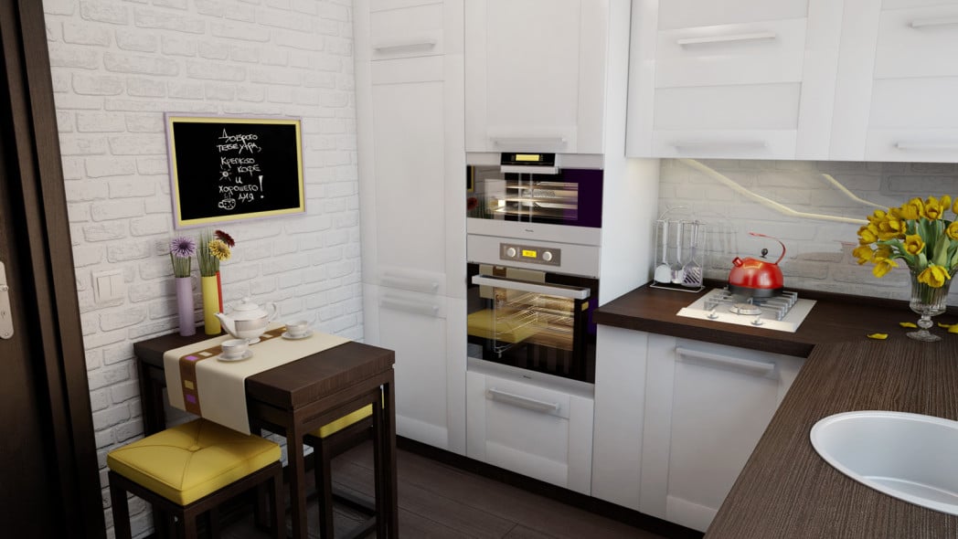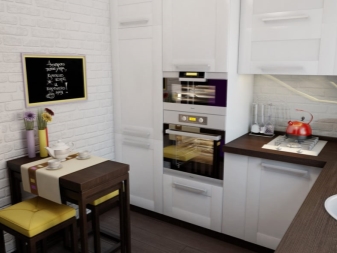 - In kleinen Räumen sind helle Möbel geeigneter, so dass für eine kleine Küche ein weißer Federkasten oder die Farbe von milchiger Eiche ausreichen.