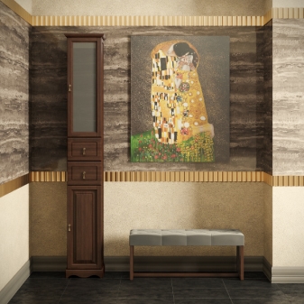 - Solch eine Säule nimmt in jedem Fall eine kleine Menge von Quadratmetern ein, sie kann sogar in einen kleinen Raum passen, in dem die Verwendung einer normalen Schrank- oder Möbelwand unmöglich ist.