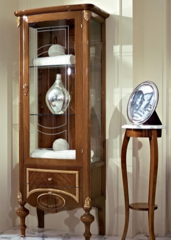 - In Gegenwart von Glastüren kann es als eine Vitrine dienen - eine Alternative zu der klassischen Wand, es wird oft verwendet, um schöne Gerichte, Antiquitäten und verschiedene interessante Souvenirs, vielleicht mit einem Schloss zu präsentieren.