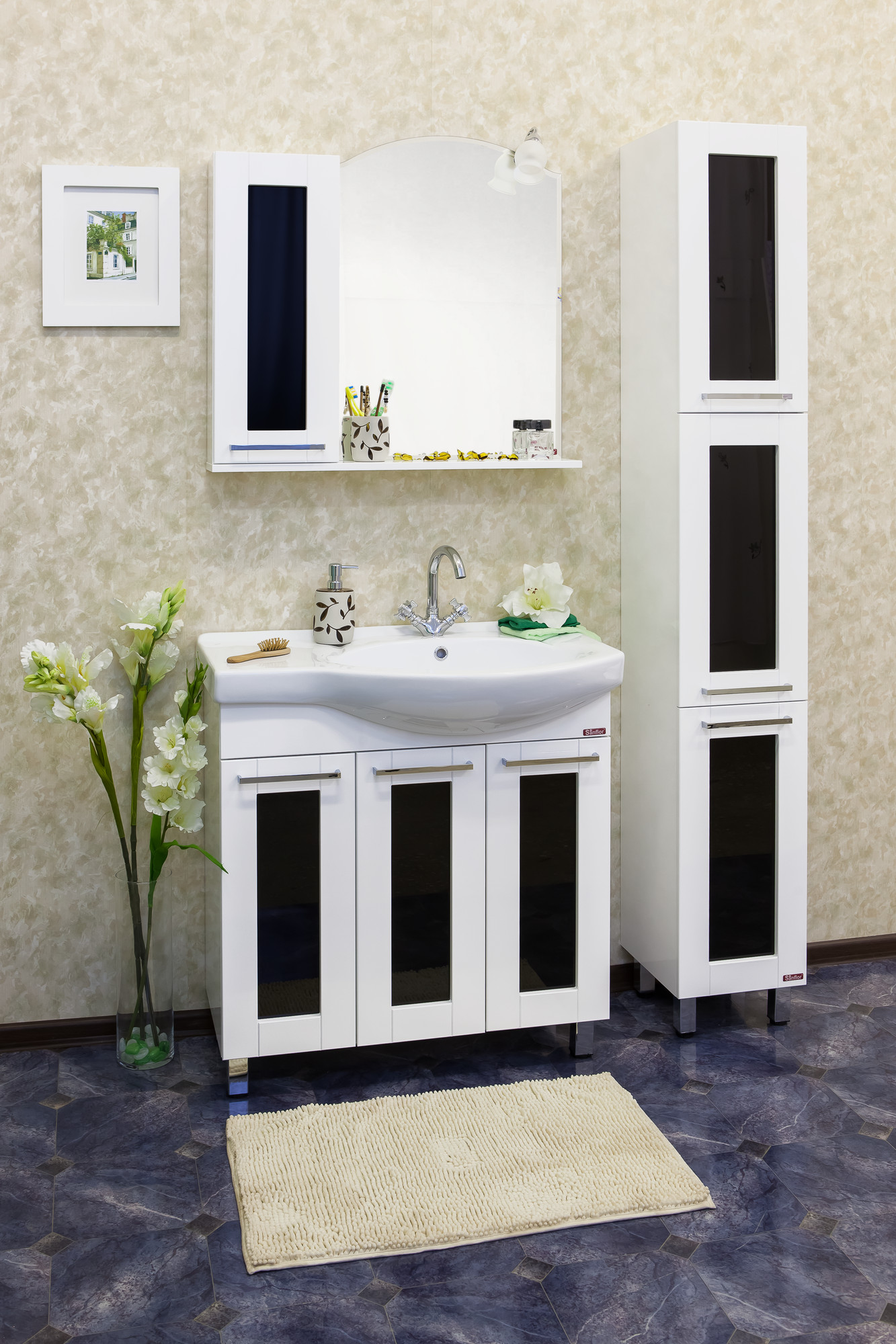 Die Fassaden der Schränke sind mit verschiedenen dekorativen Elementen ergänzt. Als Dekoration werden meistens Spiegel oder Glasscheiben verwendet. Aufgrund der verschiedenen Ausführungen kann das Gehäuse durch fast jede Farbe und verschiedene Texturen unterschieden werden, was zur Einzigartigkeit jedes Produktes beiträgt.