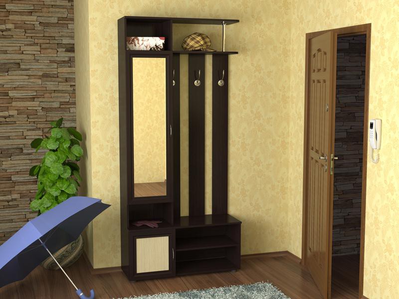 Einige kleine Wohnungen haben so kleine Räume, dass es fast unmöglich ist, auch nur einen kleinen Schrank zu tragen, und es gibt so ein Bedürfnis. Und hier kommt ein Kleiderschrank. Es hat solche Dimensionen, dass es sogar auf kleinem Raum passt, und es hält genug Dinge, fast wie ein großer Schrank.