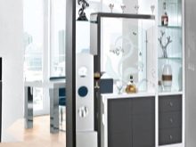 Schränke Partitionen - das ist eine gute und kostengünstige Möglichkeit, den Raum Ihres Hauses ohne Reparatur zu reparieren. Die Möbel helfen, einen großen Raum zu zonieren, und in einer kleinen Wohnung ist es eine innere Partition. Zusätzlich zu den Hindernissen hat das Design eine gute Kapazität und dient auch als ein Speichersystem für verschiedene Dinge.