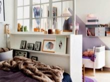 Raumeinteilungsideen mit Hilfe von Schranktrennwänden sind immer relevant, da sie die Möglichkeit bieten, ein isoliertes Zimmer einzurichten. In einigen Modellen ähnlicher Möbel enthält in das Design eines Tisches oder sogar ein Bett eingebaut. Daher ist für ein solches Hindernis die Anordnung eines Bettes, eines Kinderzimmers oder eines Arbeitszimmers möglich.