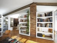 Es gibt Schränke-Partitionen mit einer geringen Höhe, die die Decke nicht erreichen. Aufgrund seiner beträchtlichen Breite ist es in einem Raum mit hohen Decken auf seiner Oberseite möglich, sogar einen Schlafplatz mit einer Treppe auszustatten. Dies kann Ihnen Geld sparen, um ein Bett zu kaufen.