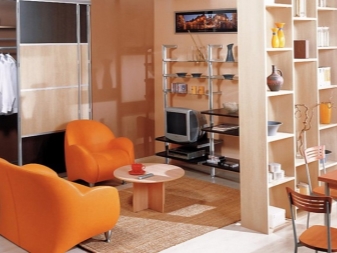 - Oft gibt es niedrige Schränke, die die Raumzonierung nur symbolisch und unter Beibehaltung der Sichtbarkeit darstellen.