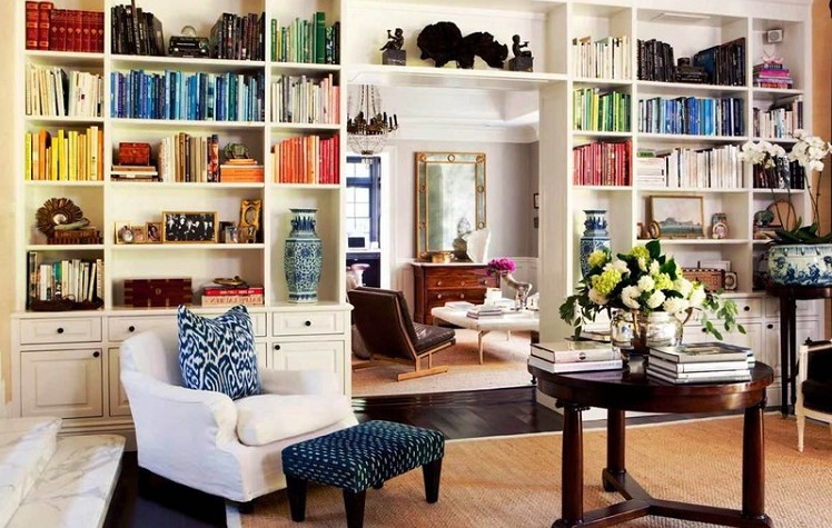 - Es ist besser, das Wohnzimmer mit einem doppelseitigen Schrank mit Regalsystem auszustatten.