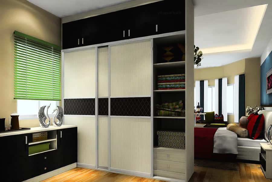 - Darüber hinaus können Sie einen neuen Raum auch in einem kleinen Raum erstellen, wenn Sie Regal- und Abteiltüren installieren, wo Sie Ihre Umkleidekabine platzieren.
