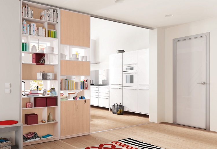 - Der Trennschrank kann mit einer eingebauten Tür ausgestattet werden, die die Bewegung der Bewohner rund um die Wohnung frei und bequem macht.