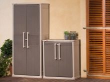 - Mit Hilfe von Kunststoffteilen werden Schränke und kleine Schränke in verschiedenen Formen hergestellt, unter denen jeder ein Modell nach seinem Geschmack findet.