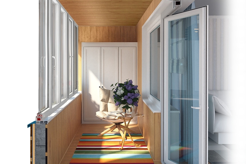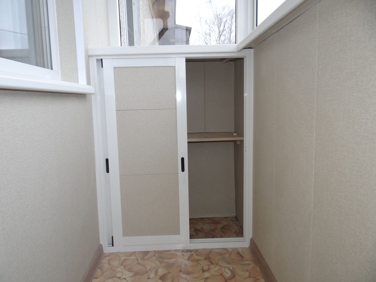 Eingebaute Strukturen sind bequem auf der Loggia oder im Flur zu schaffen. Sie erfordern die Kosten für eine kleine Menge an Material. Sie sparen Platz und Zeit, da vor der Installation von Kunststoffplatten kein fertiger Rahmen erstellt werden muss. Wenn der Schrank in die Wand oder unter die Höhe der Fensterbank eingebaut wird, können die Seitenwände überhaupt nicht installiert werden und der Schrank kann auf Regale beschränkt werden.