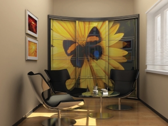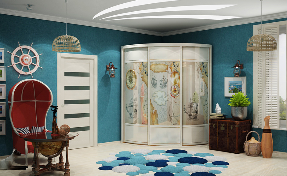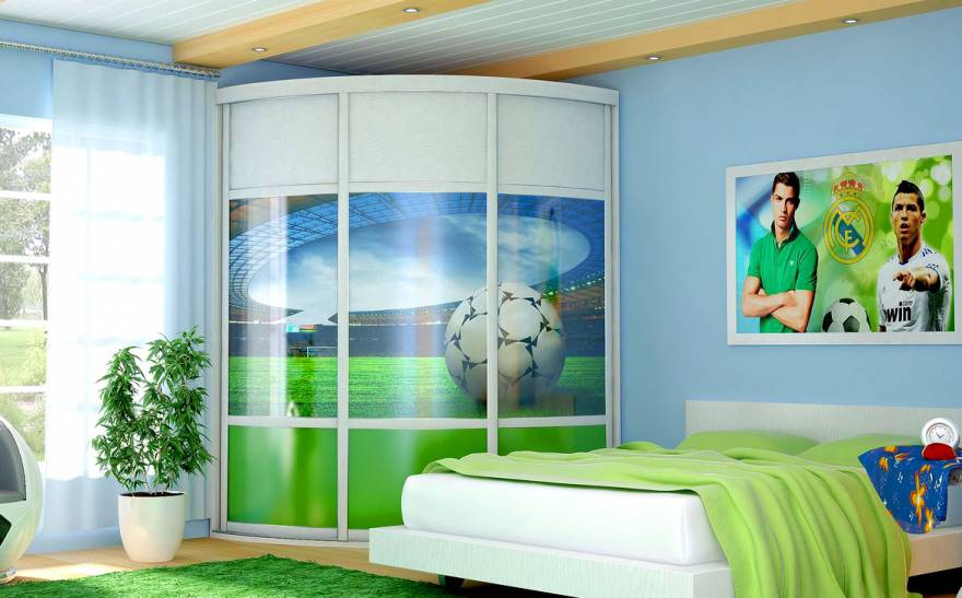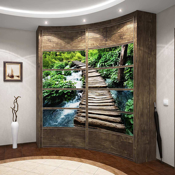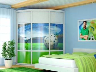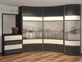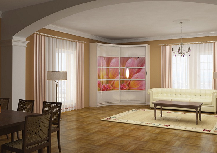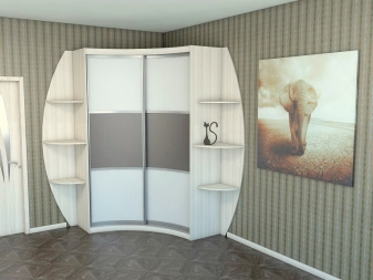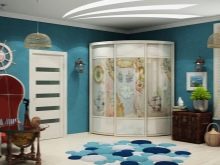 Es gibt auch einen runden Eckschrank oder ein Halbkreismodell. Durch den Kauf eines solchen Produkts können Sie ein kreatives Design Ihres Raums erstellen. In diesem Fall können Sie die ungewöhnlichsten und lebendigsten Drucke auf den Möbeln verkörpern. Fotodruck wird helfen, Individualität zu betonen, es wird eine ausgezeichnete Wahl für ein Kinderzimmer sein.