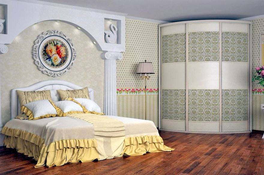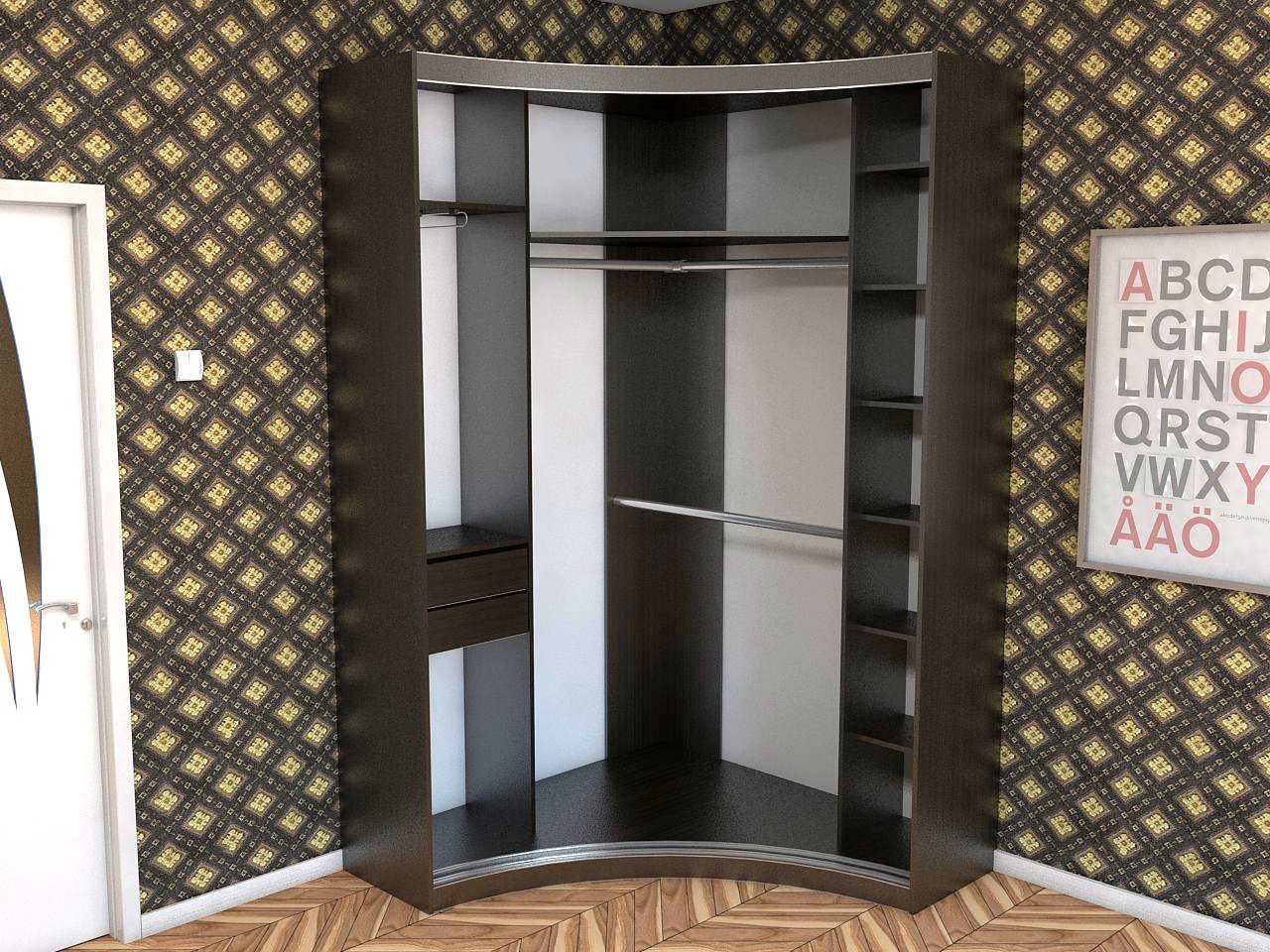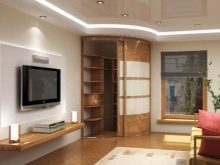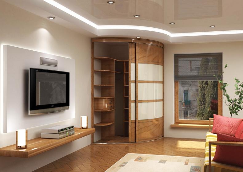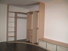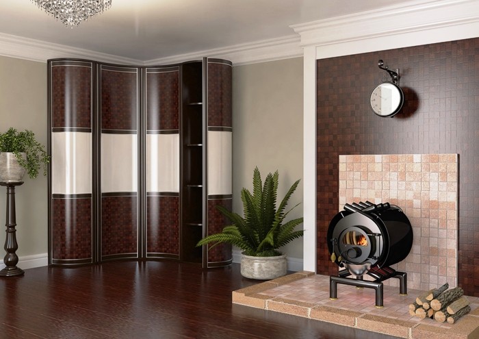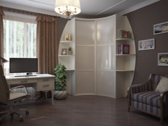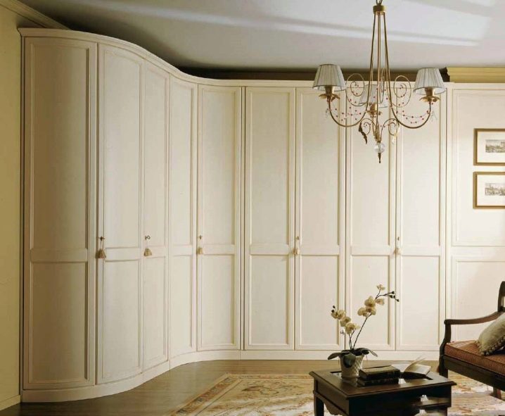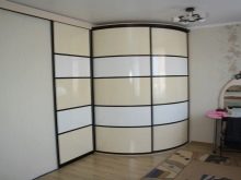 Die radialen Schränke (anderer Name - radial) werden helfen, jede Interieu-Spektakularität und Harmonie zu geben. Sie sind recht funktional und sparsam, helfen die Umgebung optimal zu nutzen.