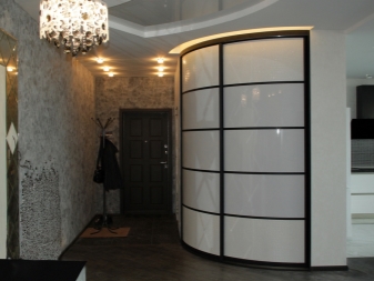 Die ungewöhnliche Form der Garderobe mit radialen Türen wird dazu beitragen, jeden Stil im Innenraum zu ergänzen. Aber das ist nicht der Hauptvorteil solcher Produkte. Es gibt andere Momente, in denen sich diese Möbel in die Kunden verliebt haben: