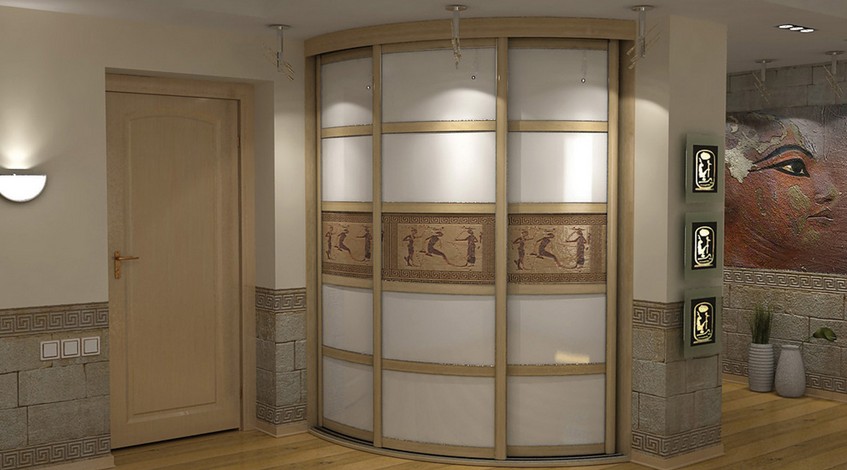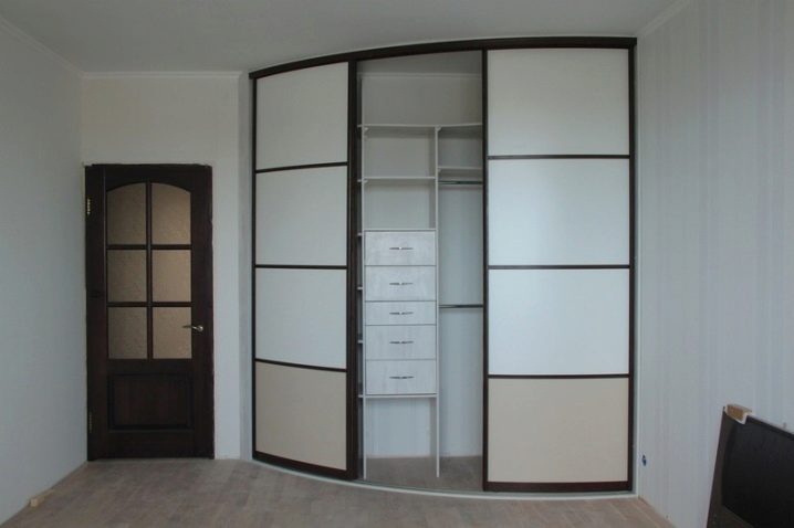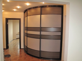 Solche Modelle haben keinen Fall. Der Schrank ist nur mit einem Schiebesystem mit Fassaden ausgestattet. Der interne Inhalt hilft, alle wichtigen und notwendigen Gegenstände für Sie und Dinge zu enthalten. Ähnliche Modelle können in die Wände oder in die freien Nischen des Raumes eingebaut werden. So können Sie Platz optimal zuweisen. Interne Füllung ist an den Wänden angebracht, und ein Schiebesystem - an Boden und Decke. Radial Einbauschränke benötigen wenig Platz im Raum.