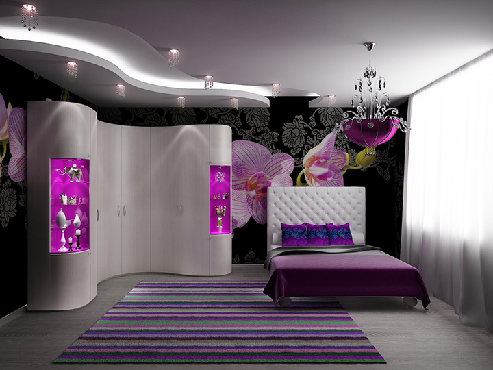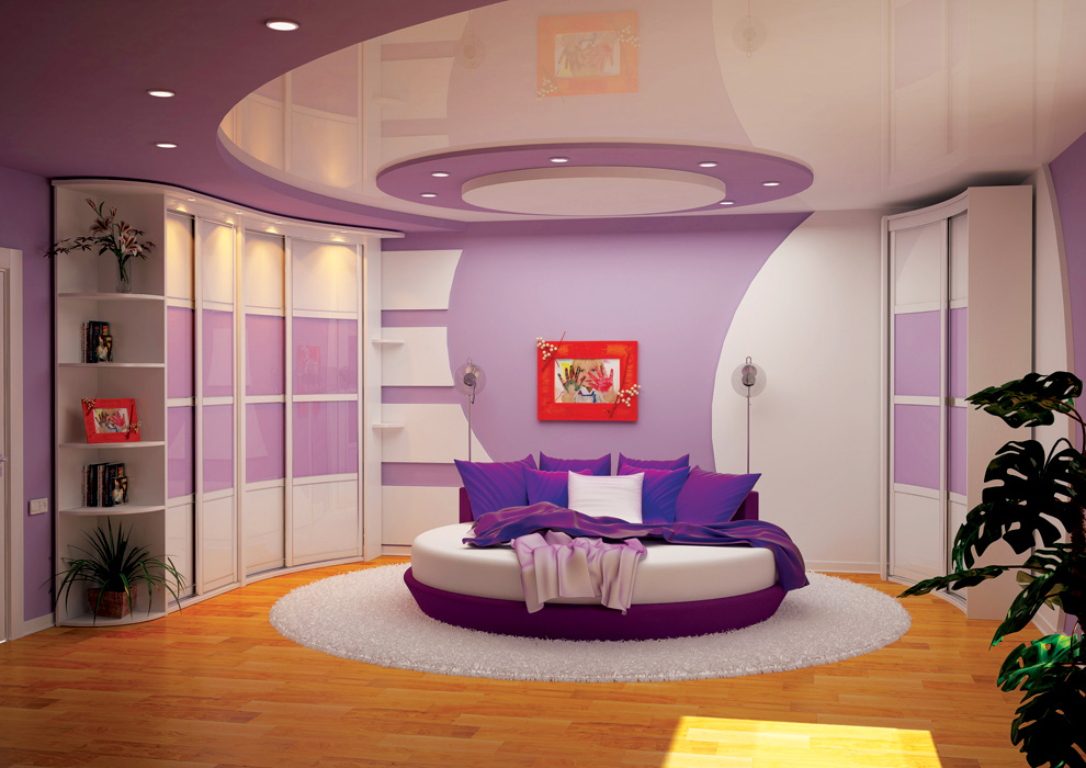 - Im Schlafzimmer oder Wohnzimmer können Sie erfolgreich ein konkaves Design platzieren, das in einer Vielzahl von Farben hergestellt wird. Es kann ein Tierdruck oder ein Bild eines geliebten Helden sein (wenn es ein Kinderzimmer ist).
