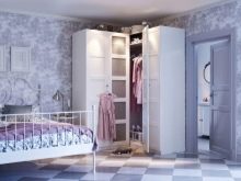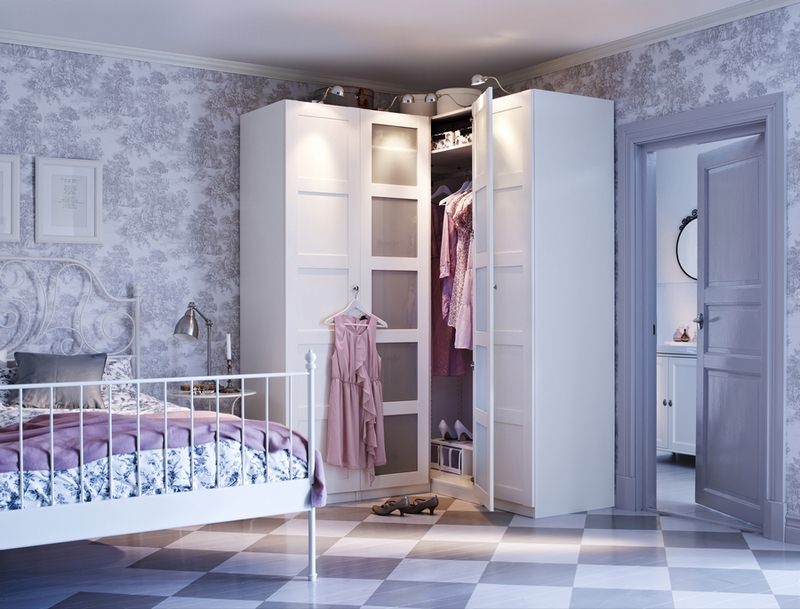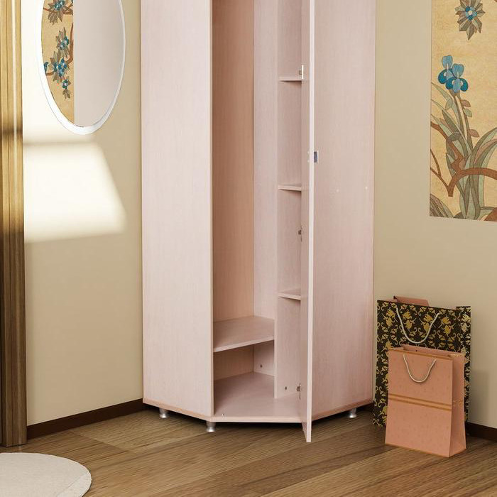 - Für den Flur. Da hier Oberbekleidung gelagert wird, werden Eckschränke mit Flügeltüren oft mit Regalen für Kleinteile ergänzt. Dies können Schlüssel, Handschuhe, Quittungen und andere Kleinigkeiten sein. Und drinnen - ein Fach für große Dinge und Regale für Schuhe und Hüte.