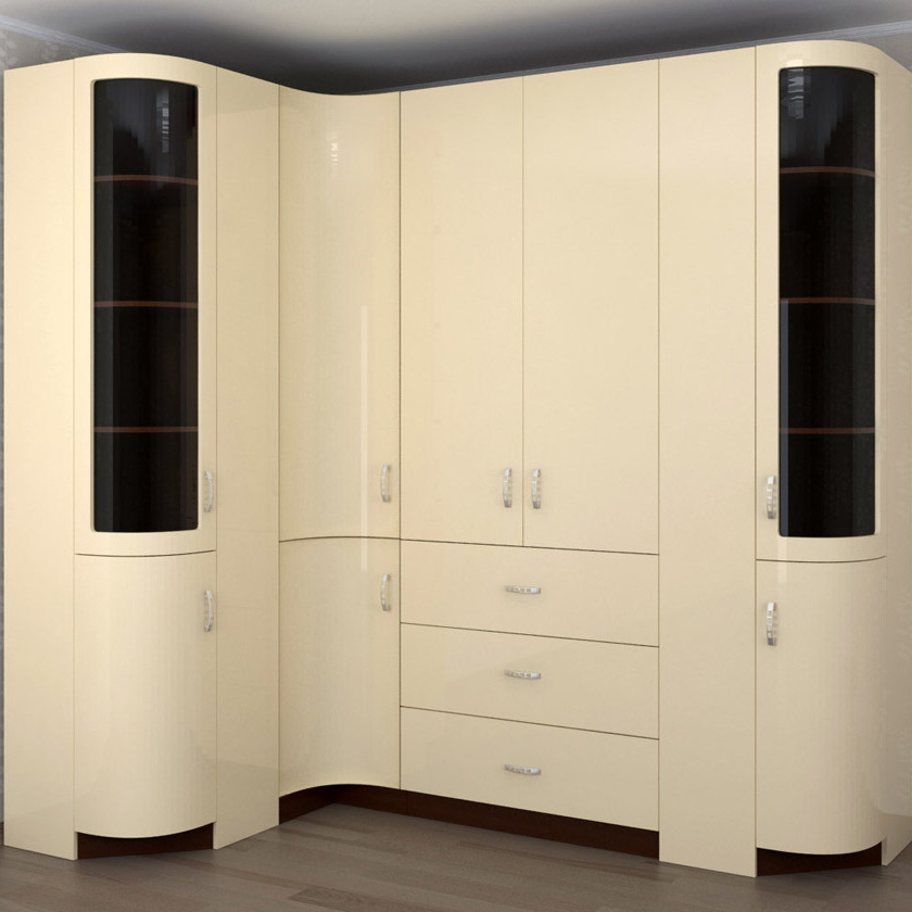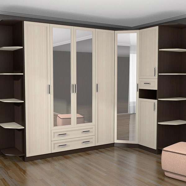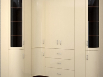 Stilistisches Design und Materialaus welchem der Eckschrank hergestellt wird, hängt von vielen Faktoren ab: dem Raum selbst, wo der Schrank aufgestellt wird, seiner Größe und seinem Zweck.