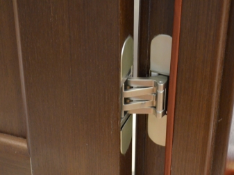 - Verborgene Scharniere bestehen aus einem Metallgehäuse und einem darin verborgenen Scharnier, das über einen Hebel direkt mit der Tür verbunden ist. Im geschlossenen Zustand versteckt sich dieser Hebel im Inneren. Für die Produktion von hochwertigen Scharnieren versteckter Art wird eine spezielle Metalllegierung verwendet - Tsak. Details davon haben einen schönen Glanz und die Legierung selbst hat keine schädliche Wirkung auf Menschen.