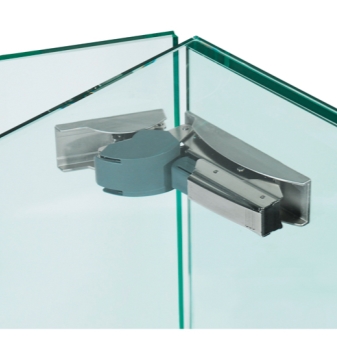 - Die Scharnierscharniere bestehen aus dem Scharnier selbst und den Dichtungen für das Glas. Sie sind aus Kunststoff. Das Aussehen solcher Armaturen ist nicht sehr ästhetisch und die Lebensdauer ist kurzlebig. Gleichzeitig sind seine Kosten ziemlich demokratisch.