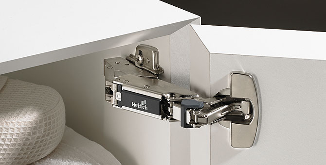 - Semifaltbare Scharniere werden dort montiert, wo zwei Türen eine Seite des Schranks schließen. Sie werden hauptsächlich in den kombinierten Modellen der Schränke verwendet.