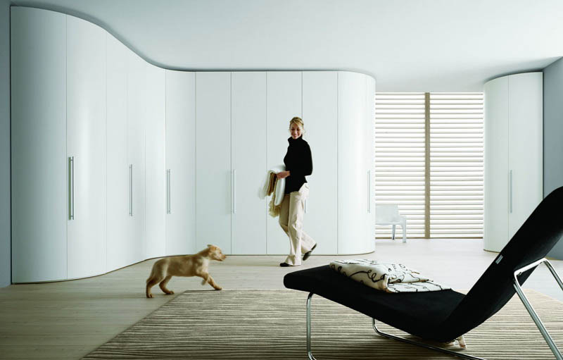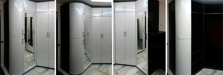 - Radius. Die Türen dieser Schränke haben eine runde Form, daher ihr Name. Möbel mit solchem Design sehen im Innenraum sehr schön und elegant aus. Solche Modelle zu bauen ist jedoch sehr schwierig. Von hier sind ihre Kosten im Vergleich zu anderen Fällen überschätzt.