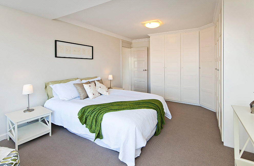 - Für Schlafzimmer. Solche Schränke haben in der Regel zwei Abteilungen: eine mit Regalen für Unterwäsche und Bettwäsche, und die andere - voller Größe mit Kleiderbügeln. Manchmal haben die Schränke im Schlafzimmer mehrere Module für jedes Familienmitglied.