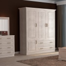 - Vierfacher Chiffonnier Es ist ein eher Gesamtprodukt. Aber manchmal sind seine Fächer ziemlich kompakt und es ist selbst eine ziemlich elegante Konstruktion. Es kann aus zwei identischen Abteilungen in der Nähe bestehen. Eine andere Variante des Layouts ist ein großes Fach in der Mitte und ein Paar kleiner an den Seiten. An der Ober- und Unterseite des Schranks befinden sich oft zusätzliche Schubladen und Regale.