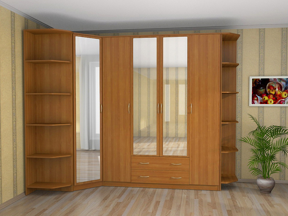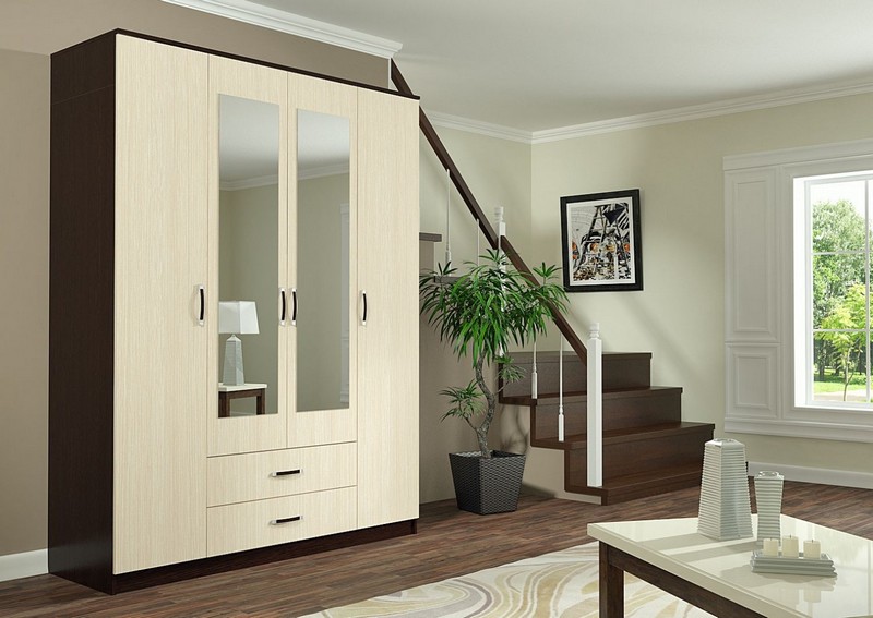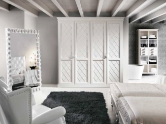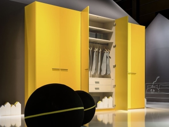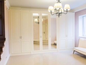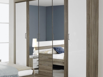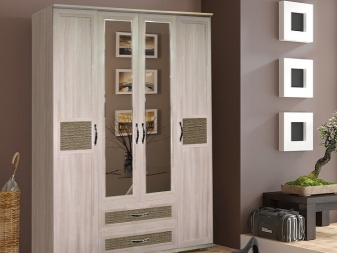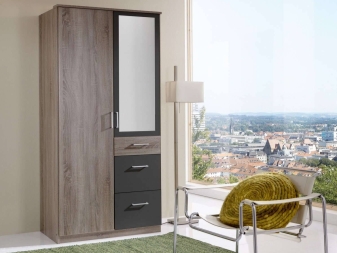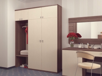 Einige wählen einen Kleiderschrank als Schrank. Je nach Raumfläche kann er vier- oder sechseckig sein. Der Innenraum des Schrankes ist oft für einen Platz für Schubladen in der ausgefahrenen Position ausgelegt, das Produkt kann sowohl außen als auch innen mit einem Spiegel geliefert werden. Die Größe der Garderobe hängt von ihrer Zusammensetzung, Anzahl der Fächer und Schubladen ab.