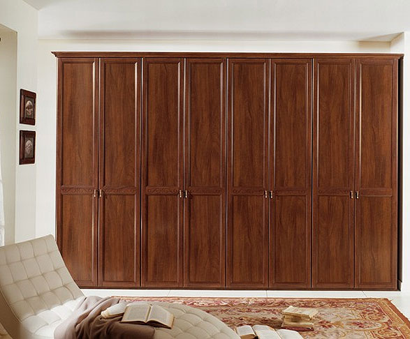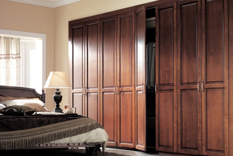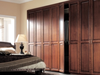 - Eines der am meisten Swing-Modelle sind Kleiderschränke. Sie belegen einen ziemlich großen Raum. Ein Merkmal solcher Schränke ist der Zugang zu den Regalen während der Struktur. Der Vorteil eines solchen Schrankes ist die Möglichkeit eines schnellen und gleichzeitigen Zugriffs auf alle Dinge. Das Minus ist die Gefahr, überladenen Platz im Schrank zu schaffen.