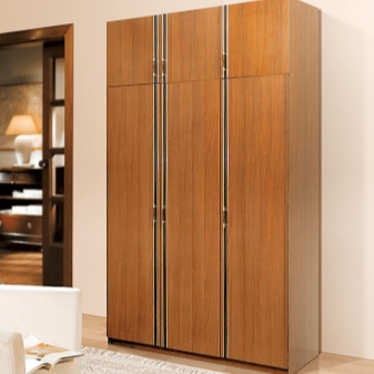 - Manche wählen Swing Kabinett des sowjetischen TypsDas ist mit einem Zwischengeschoss ausgestattet. In solchen Produkten gibt es drei und mehr Fensterläden. Das Entresol ist ein Fach, das sich über dem Hauptkörper des Schrankes befindet. Es ist in gleich große Nischen unterteilt und dient in den meisten Fällen nicht zur Aufbewahrung von Kleidung, sondern zum Platzieren von Textilien, Mützen und Haushaltsgegenständen.